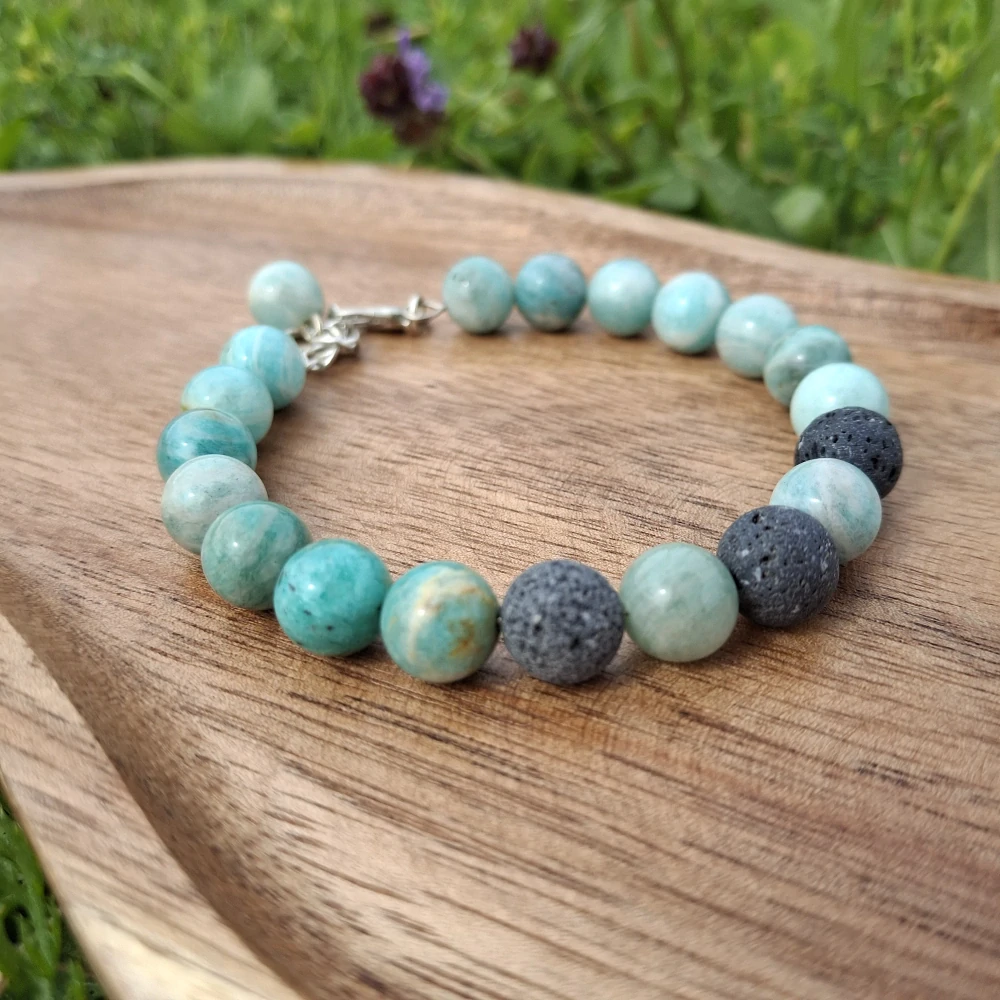 Náramek z přírodního kamene peruánský amazonit, surové lávy.