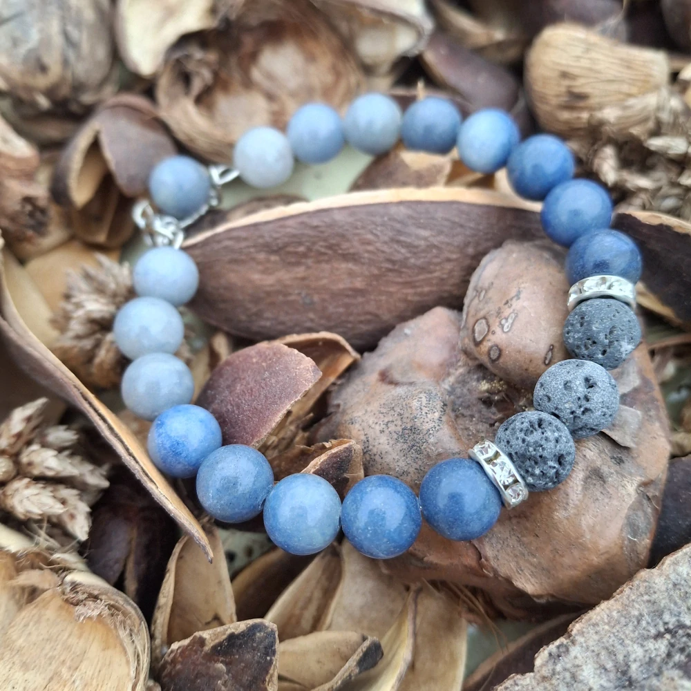 Náramek z přírodního kamene křemen se sodalitem, surové lávy a rondelek.
