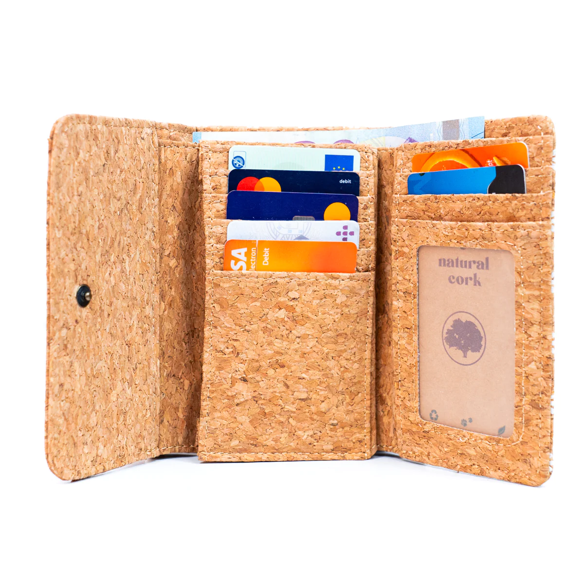Peněženka s rozměry 13,5 cm * 8,5 cm * 2 cm se může pochlubit kompaktní konstrukcí, která se pohodlně vejde do kabelky nebo kapsy. Tato korková peněženka kombinuje stylový design, praktickou funkčnost a kompaktní velikost, díky čemuž je dokonalým společníkem pro vaše každodenní dobrodružství.