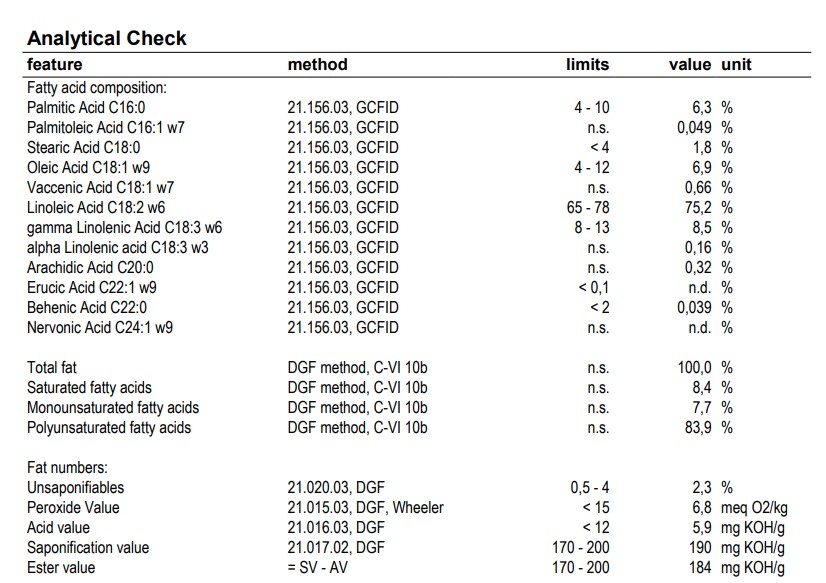 Na rozdíl od pupalkového oleje, který má vysoký oxidační potenciál, se jedná o stabilní produkt s mnohem nižším dávkováním. Je tedy vhodný do všech produktů, kam byste si přáli použít pupalkový olej, ale báli jste se kvůli jeho trvanlivosti.