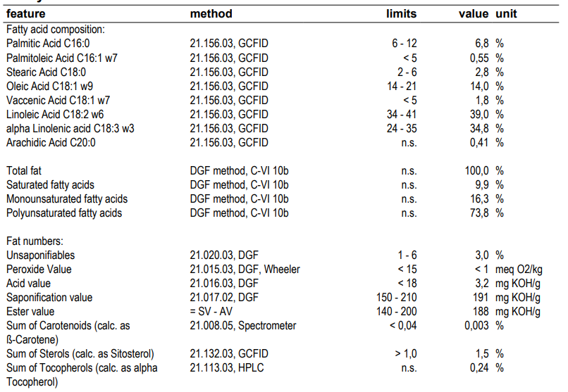Extrakt je bohatý na kyselinu linolovou a alfa linolenovou, bojuje proti předčasnému stárnutí.