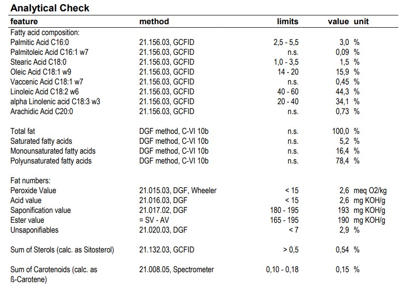 - vysoký obsah kyseliny linolové a alfa linolové